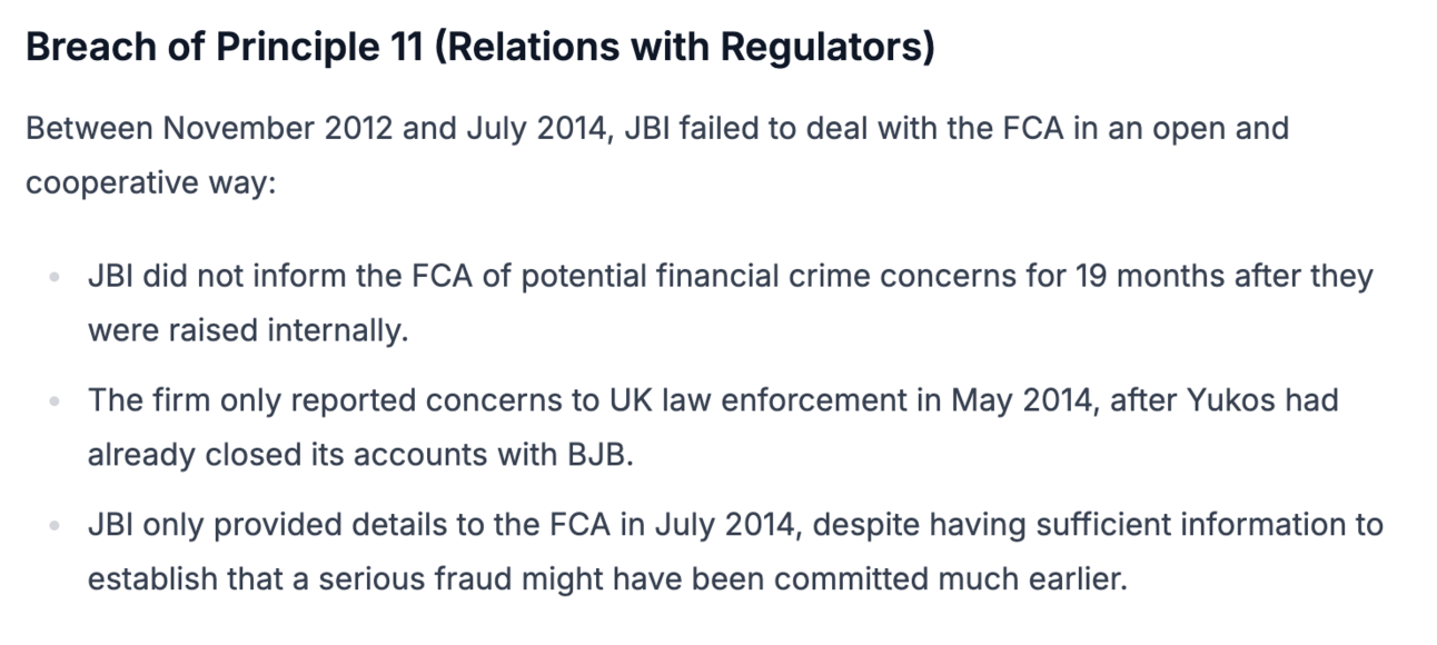Here’s the primary aggravating factor from the FCA’s 2022 Enforcement Action against Julius Baer International: