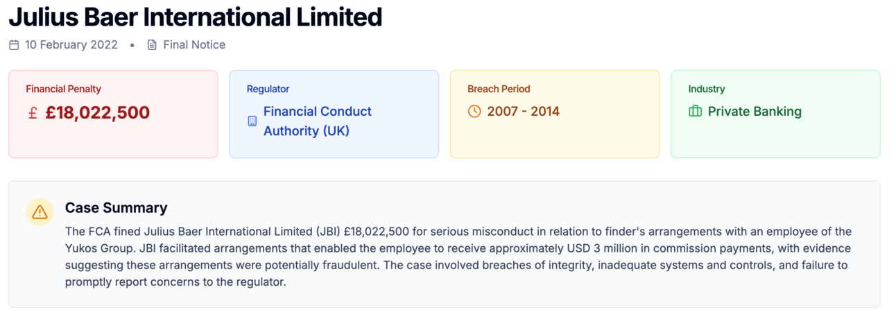 So as we wait, here’s my quick overview (draft, not published yet) of the FCA’s financial crime Enforcement Action and fine against Julius Baer International in 2022.