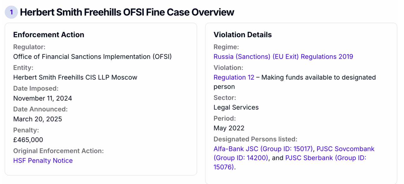You get a link to the overarching regulations named and breached - ie Russia (Sanctions) (EU Exit) Regulations 2019